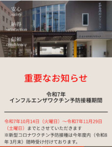令和7年10月14日月曜日より、インフルエンザワクチンの予防接種をはじめました。
